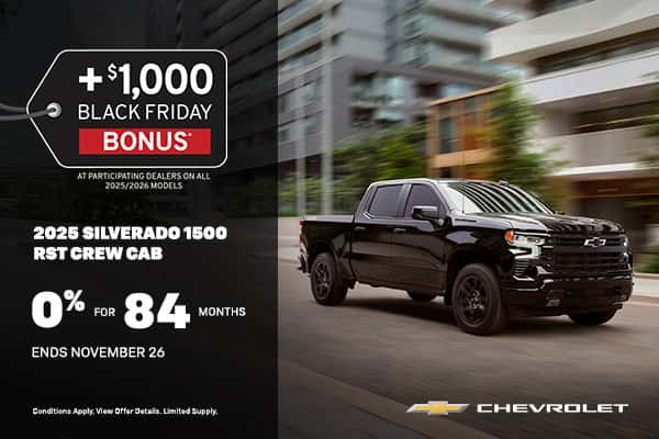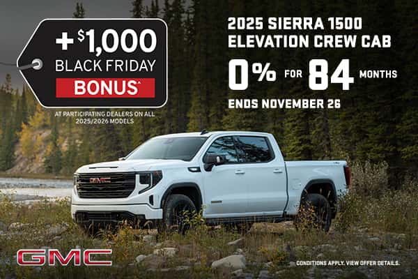 * $150 instant rebate on the purchase of a set (4 tires) of Bridgestone Blizzak winter tires when you purchase, finance or lease an eligible 2023-2026 GM vehicle between January 3, 2025 to December 31, 2025. New retail vehicles only; purchase, finance or lease of used, certified pre-owned or fleet vehicles not eligible for offer. Eligible tires must be purchased at time of delivery of vehicle. Rebate is non-stackable with other Bridgestone consumer offers. Rebate applied before applicable taxes. Offer is subject to tire availability. No rain checks available. This offer may be changed, cancelled or extended at any time without notice. Conditions apply. See participating dealer for details.n1 TIRE 30-DAY PRICE MATCH GUARANTEE: Your local dealer will match the competition's prices. If you purchase one of the aftermarket tire brands listed below and later find a better price on a qualifying brand within 30 days of the purchase, we’ll refund the difference. Tire Brands BFGOODRICH, BRIDGESTONE, CONTINENTAL, DUNLOP, FIRESTONE, GENERAL, GOODYEAR, HANKOOK, KELLY, MICHELIN, PIRELLI, UNIROYAL, KUMHO. The price match applies to the brands listed above. Competitive Prices: The competitive price you find must be in a valid ad, written estimate or Internet quote for identical, new tires. The tires must be an exact match in brand, tire line, size, load rating and speed rating to be eligible for the price match guarantee. All competitive quotes (including internet quotes) must come from a local competing tire retailer and installer (with a physical location within 100km of your participating GM retailer). The competitive price must be valid within 30 days of your purchase of any of the tire brands listed above. Service and Installation: The price match guarantee is only valid on the tire price and does not include installation/labour. Offer available to retail customers only at participating Canadian Chevrolet, Buick, GMC and Cadillac dealers. Offer valid from January 1, 2025 to December 31, 2025. GM Canada reserves the right to cancel, modify or amend the offer without notice. Conditions and limitations apply. May not be combined with other offers and programs.n
